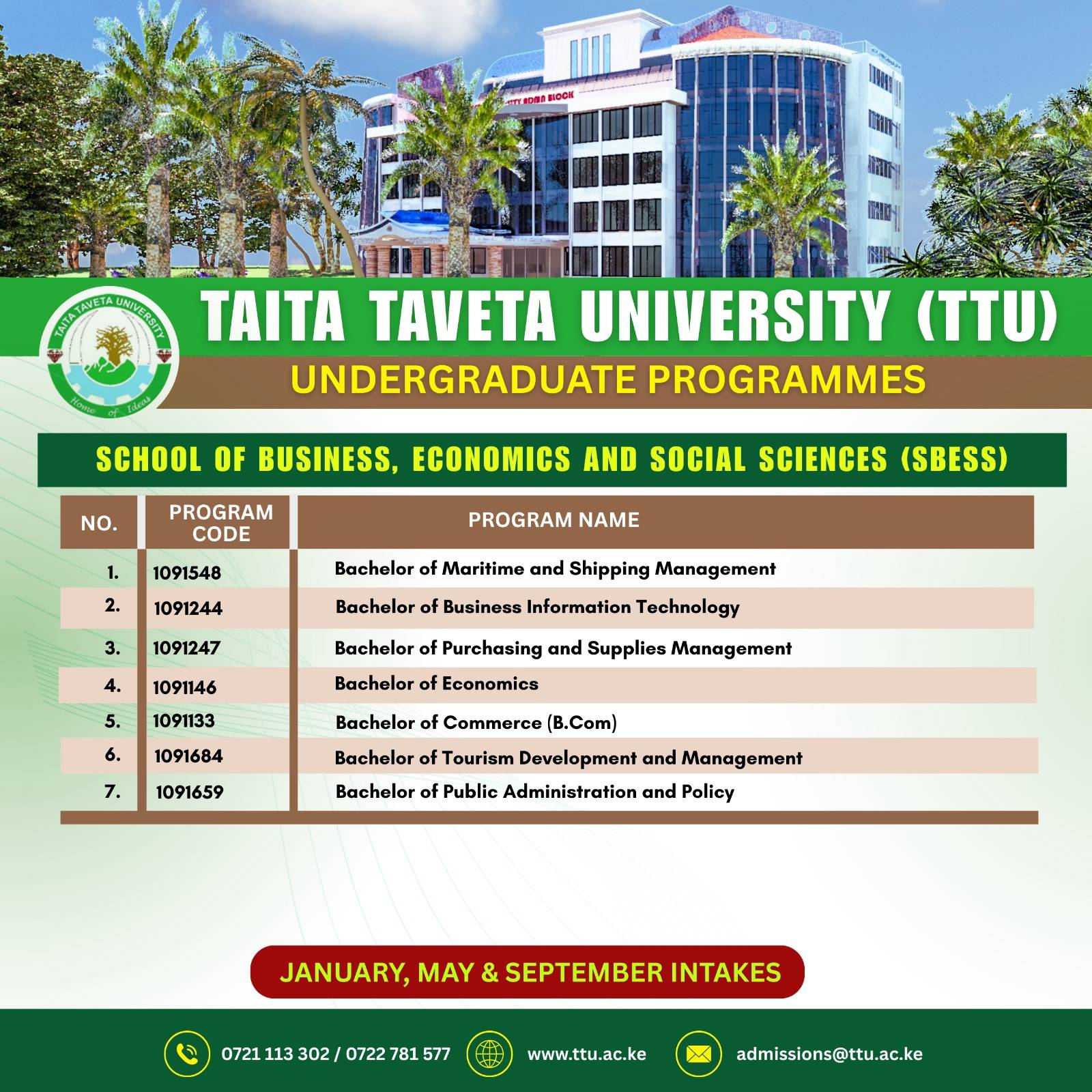 Taita Taveta University (TTU) is a public university in Kenya that has matured over the years and cut a niche that sets her apart as Kenya’s university of mining and natural resource management.